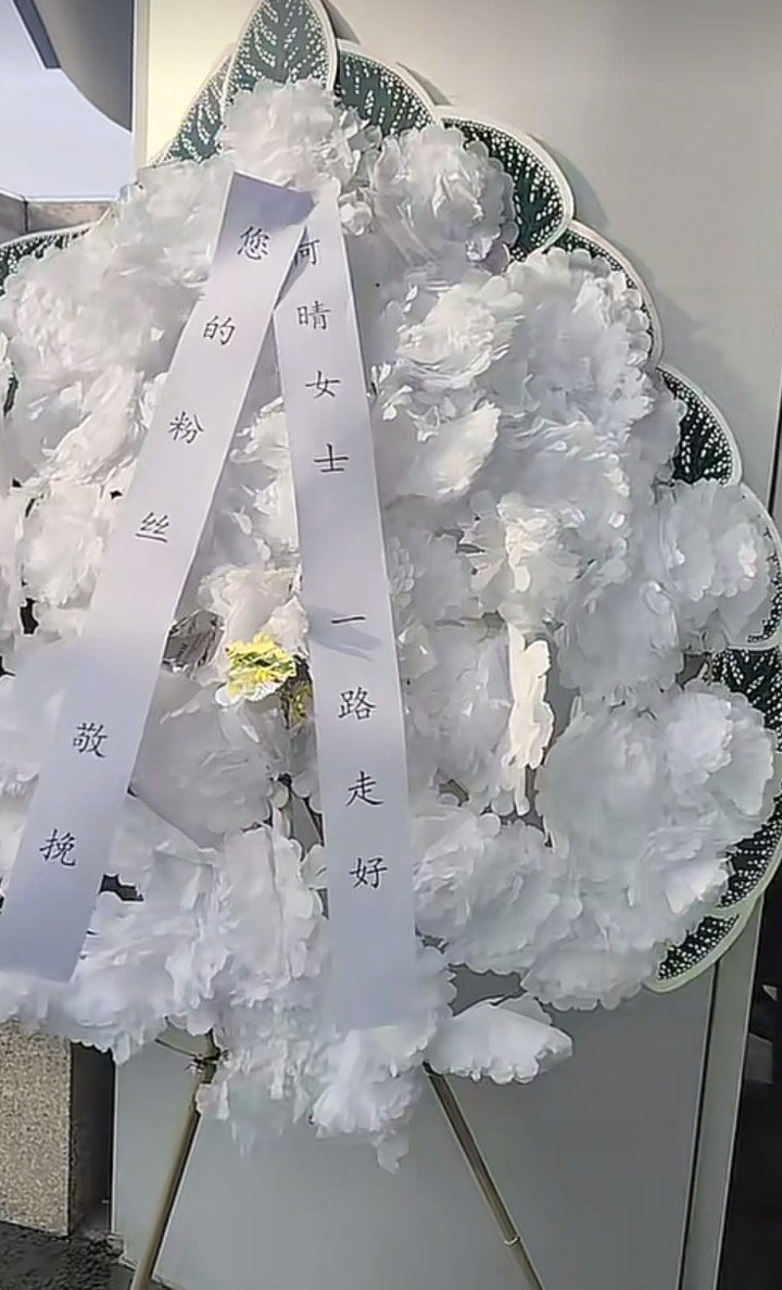 有很多何晴的粉丝自发的来灵堂门口送何晴,这些粉丝都是一些上了年纪的,或者和何晴年龄相仿的,他们有的送来的花圈,有的穿着黑衣在灵堂门口静静的看着。